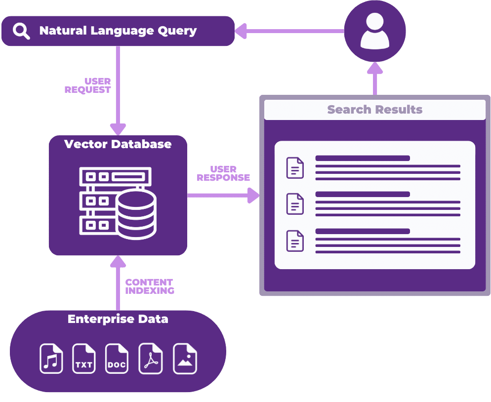 An open-source vector database that uses a fine-tuned language model to automatically vectorize and index content for quick retrieval powers the solution. The same language model is used at query time to vectorize the query and match it against the indexed content. Because of the use of the LLM to vectorize the content and the query, the search engine can return relevant results based on the query’s semantic meaning. At the same time, a second process, keyword search, is initiated. The final result is a weighted score between keyword-based and vector-based search results based on several query attributes, such as length or terminology.