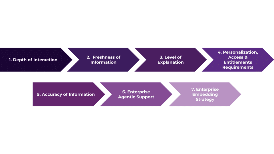 2. Freshness of Information: describes how frequently the content and data behind the semantic search solution are updated and how quickly users receive these updates. While lower freshness implies data updated infrequently, at higher freshness levels, data is updated frequently or even continuously which helps to ensure users are always interacting with the most current, accurate, and updated information available.
