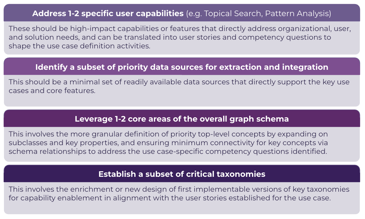 For example, a semantic layer design release or “use case” for a knowledge graph-based solution should: