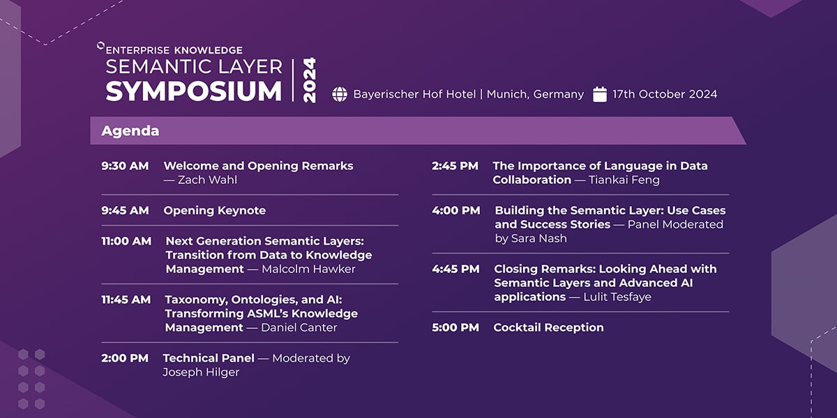 Enterprise Knowledge will be hosting the inaugural Semantic Layer Symposium, where industry thought leaders and world-class data experts will convene to discuss and explore the transformative potential of Semantic Layers. These data architectures allow seamless integration of an organization’s knowledge assets with context, enabling better decision-making, enhanced efficiency, and targeted knowledge delivery.