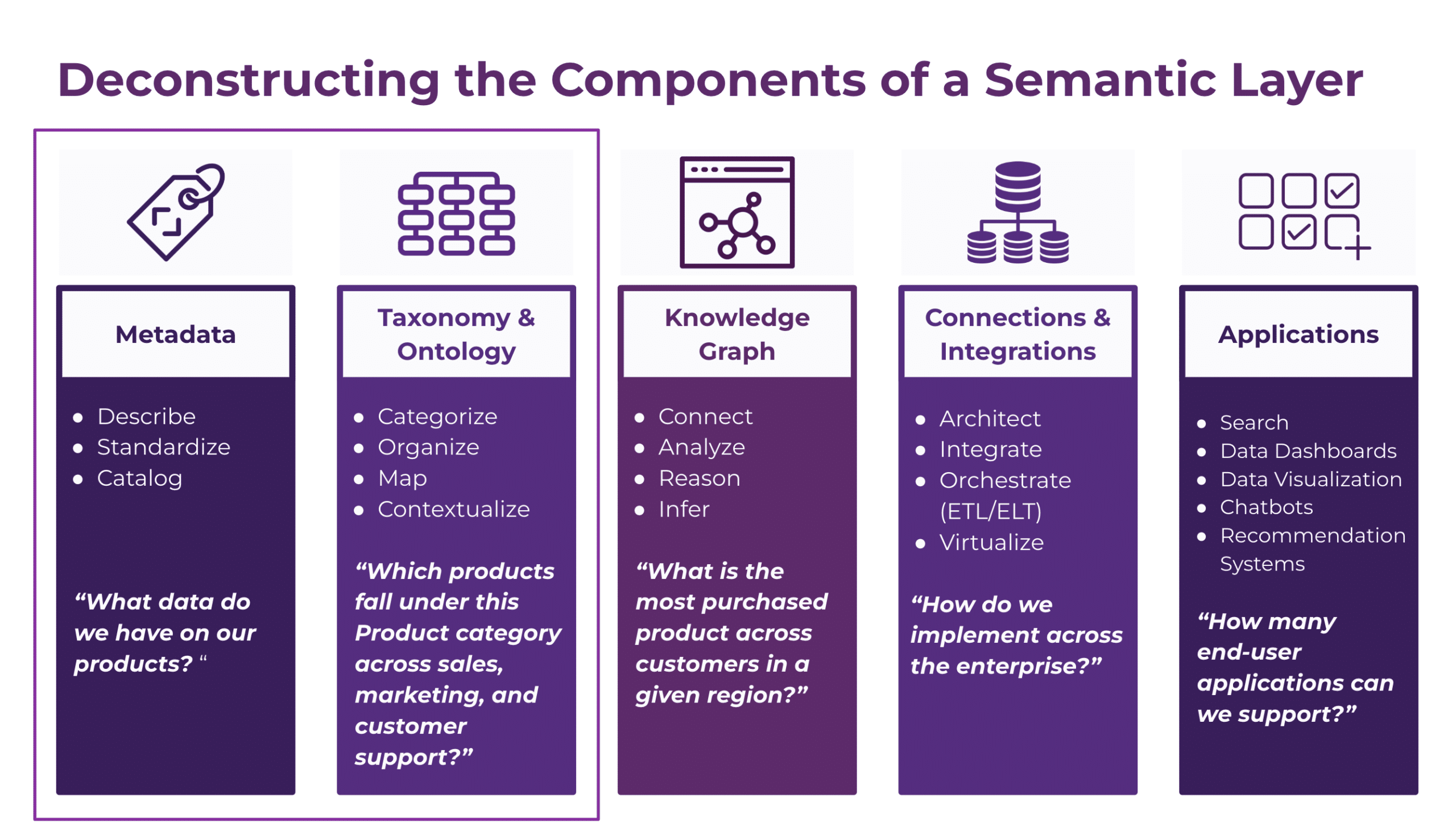 As a standardized framework for connecting organizational assets, a Semantic Layer captures organizational knowledge and domain meaning to support connecting and coordinating assets across systems and repositories. Metadata, as one component of a Semantic Layer approach, is foundational.